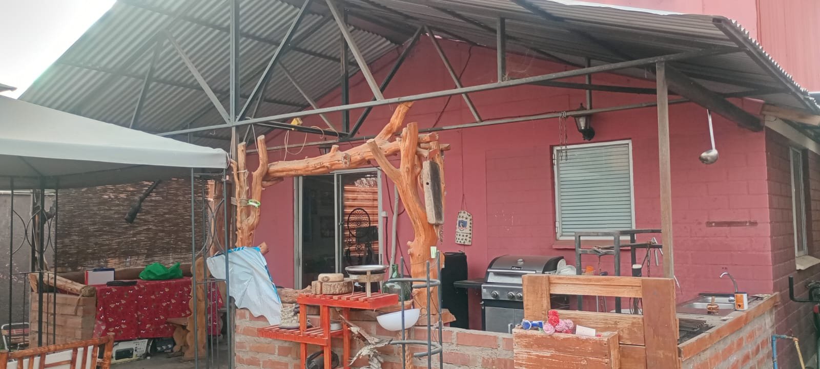 • Quincho techado de 16 m² con lavaplatos y parrilla.